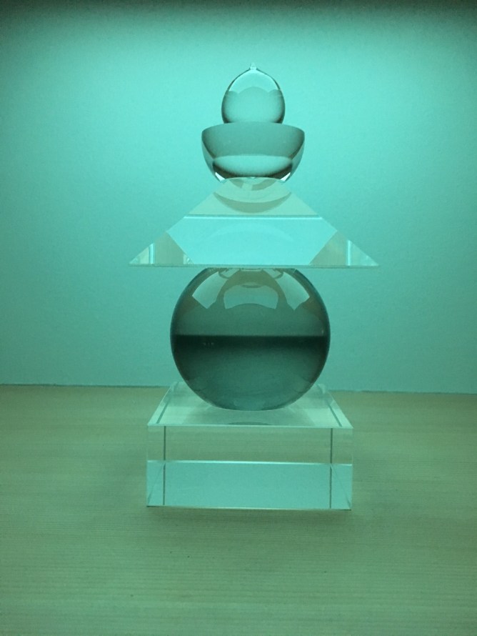 Like my first post from this trip, I had another ‘ah ha’ moment during the CA&AT. This time it was when I saw the art work titled ‘Crystal Pagoda’ (2009) – a crystal gorinto (five element stupa) by Hiroshi Sugimoto. It was part of a photographic installation called ‘Coffin of Light’ at Benesse Park where we stayed as part of the tour. Here was a link between contemporary art practice and the long history of the use of the five element gorinto in Japan, with the artist using a 13th century gorinto as inspiration. I was in the right place at the right time. For additional insights on this work of art and the philosophy behind it, see ‘Catching up on the elements‘ on my sister blog site ‘Fire up Water down’. This discovery builds on my observations about the gorinto in ‘Returning to the elements‘ . Later in my trip I came across other expressions of the gorinto at Manpuku-ji Temple in Uji and Zenstuji Temple on Shikoku Island. The pieces are falling into place.