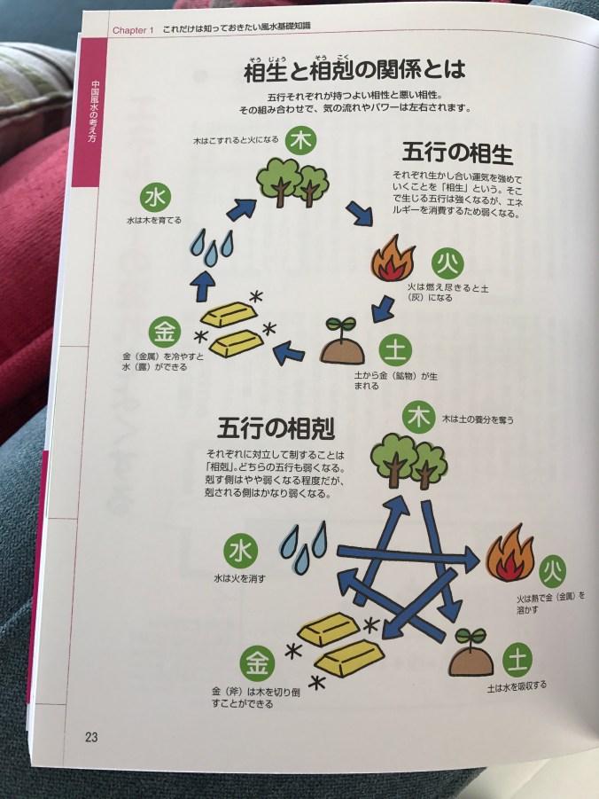 While sources in English related to fusui are fragmented and can be hard to access, a large number of modern books have been written in Japanese on applying fusui principles, including the five elements/phases, in homes or businesses. I would like to thank my friend Kaori Okushima for opening my eyes to them. The illustrations in the books remind me of the numerous feng shui titles in English in my library. Just as feng shui has been adapted for a western audience in many of these books, modern fusui practitioners in Japan such as Dr Copa have recast the concepts for popular consumption. The approach must have appeal as according to his website Dr Copa has sold 450 million copies of books written on the ZEN feng shui style he advocates. That’s a lot of books!