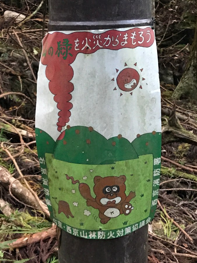 One of the distinctive fire prevention signs along the route to the summit of Atagosan.