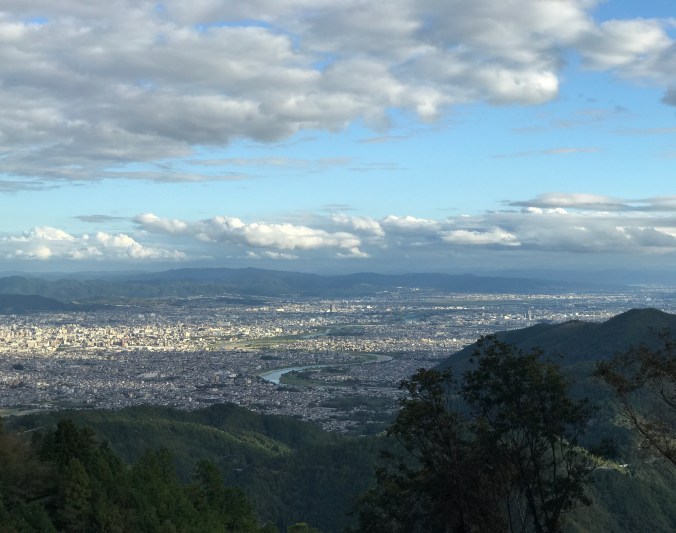 The view over Kyoto and the Hozu River (Hozugawa) from Mt Atago is spectacular. The mountain is located to the northwest of the city, the direction where thunder and lighting clouds often develop. Kyoto was designed using the principles of Fu Sui (Feng Shui) where the visual and symbolic relationship between the city and the mountains is an important (and ongoing) concept.