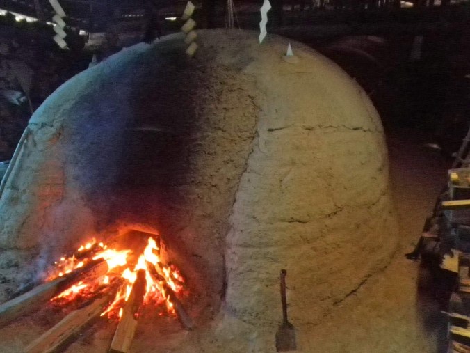 Many books and articles have been written about the traditional kilns in Japan, as well as their uptake overseas, particularly in the USA. In this vein my favourite publication is Body of Clay, Soul of Fire. Richard Bresnahan and the Saint John’s Pottery (by Matthew Welch; Aston Historical Society Press 2001). The elemental credentials of these kilns are rock solid. They are sacred  places, as shown by the white folded paper (J. shide) in front of the kiln, with Shinto rituals conducted before each firing.